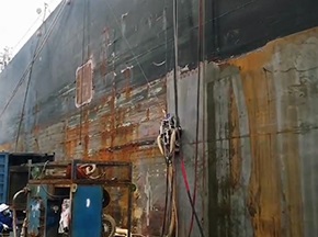 采用爬壁機器人對船舶進行除銹施工,一臺機器人相當于6個工人連續(xù)工作9個小時,有效減少船舶停航時間,機器人本身強大的附壁行走能力,可攜帶120~200 kg重量靈活移動,并具有一定的曲面越障能力,可以使機器人輕松應(yīng)對船體凹凸不平表面及曲面,實現(xiàn)對船體、船底、船頭、船舷等位置的除銹清洗作業(yè),確保對船體各個部位的徹底除銹。[查看詳情]