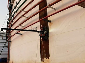 德高潔應(yīng)市場及客戶需求,推出了高效、環(huán)保、可遠(yuǎn)程控制的RC360W-MG280儲罐除銹機器人,機器人搭載高壓水射流除銹、真空抽排固液分離系統(tǒng)、爬壁機器人三大模塊于一身;使用高壓水射流特有的沖擊動能,在無腐蝕無磨損的情況下,去除儲罐外壁表面銹垢及附著物。[查看詳情]