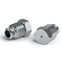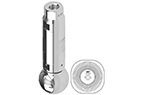 三維自動旋轉噴頭主要由不銹鋼制成,可以有效抵抗噴嘴旋轉產生的強大沖擊力。由一對錐齒輪、旋轉密封組件及液壓調速裝置等主要部件構成。進行清洗作業(yè)時,由于兩個噴管沿軸線方向具有偏心,依靠高壓水射流的反沖力使小齒輪繞著水平軸線旋轉,在經過大齒輪的嚙合作用下使旋轉密封部件沿豎直軸線旋轉。這樣就實現(xiàn)了三維旋轉清洗作業(yè)。