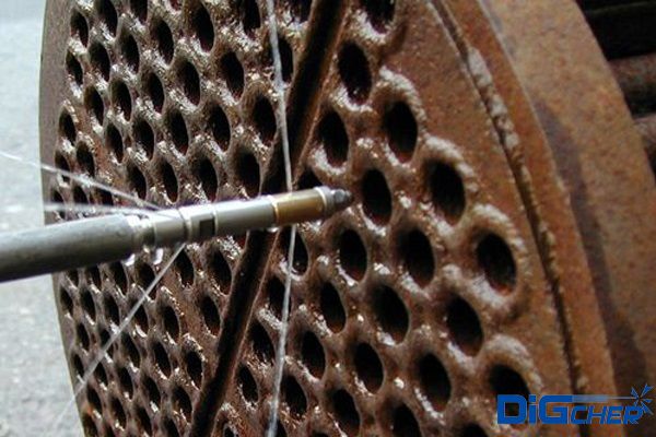 2、可防止刷管過程中的堵管現(xiàn)象,對于一般運(yùn)行中的堵管,如果時間不長,結(jié)塊不十分硬的,用高壓噴槍也可將其沖開;